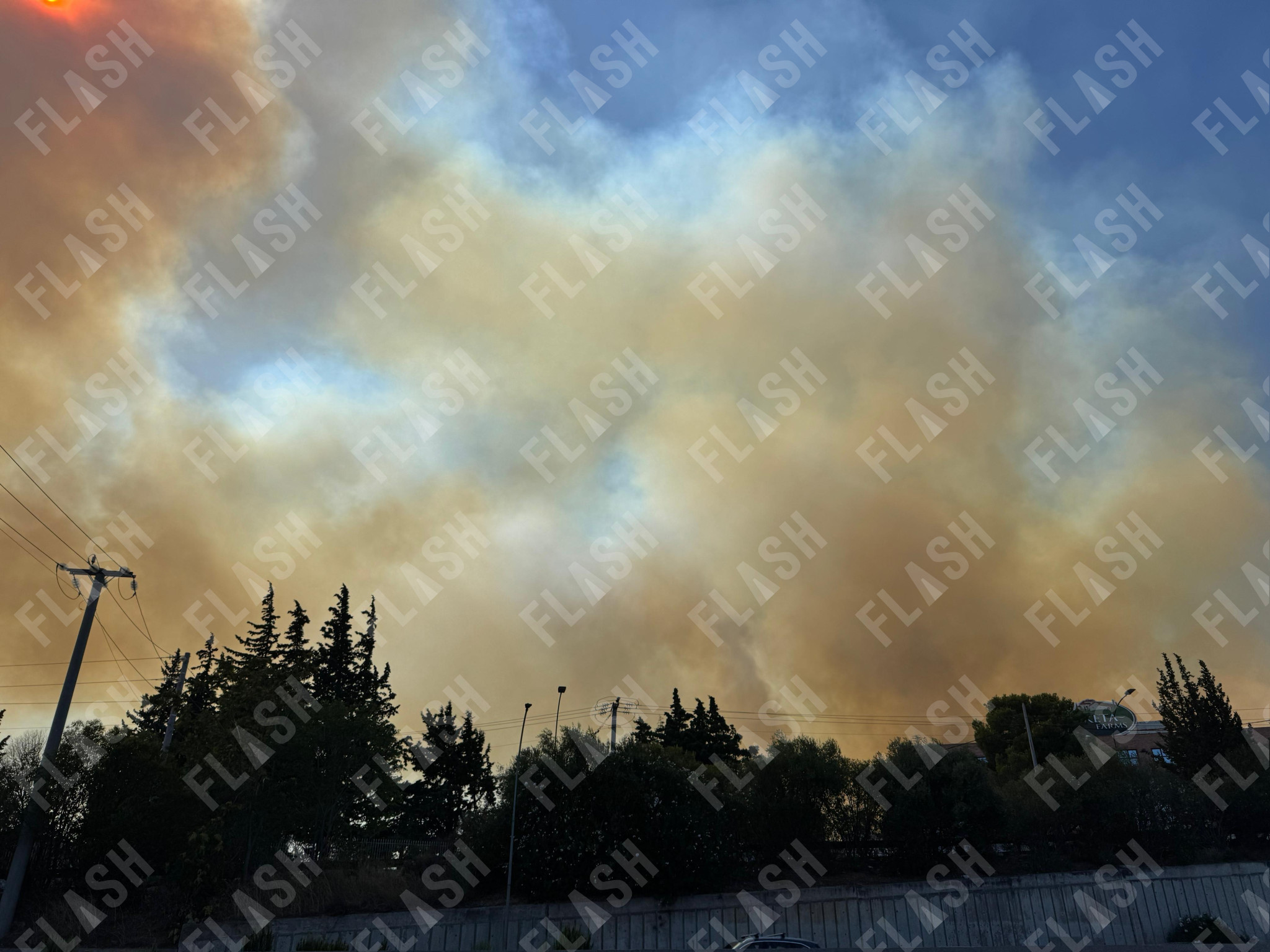 Οι πυκνοί καπνοί από τη φωτιά που καίει στους πρόποδες της Πάρνηθας έχουν «κρύψει» τον ουρανό.