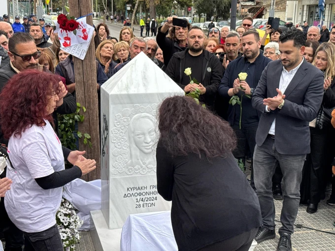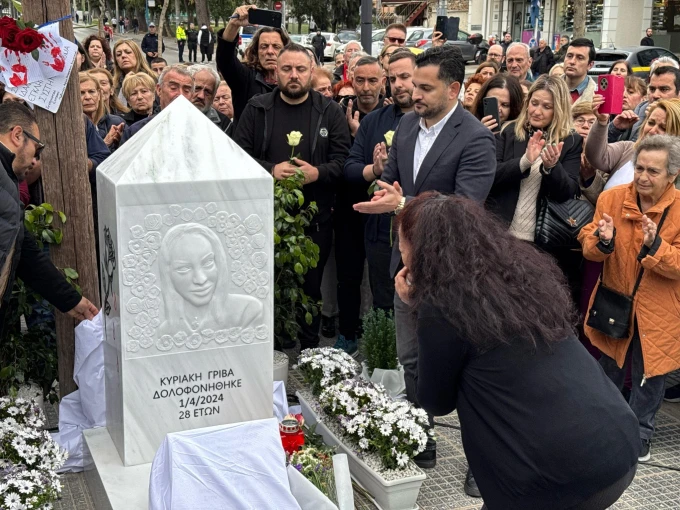 Σε κλίμα βαθιάς συγκίνησης έγιναν τα αποκαλυπτήρια του μνημείου για την αδικοχαμένη Κυριακή Γρίβα η οποία έχασε τη ζωή της έναν χρόνο πριν μπροστά από το Αστυνομικό Τμήμα Αγίων Αναργύρων ύστερα από επίθεση του τέως συντρόφου της.