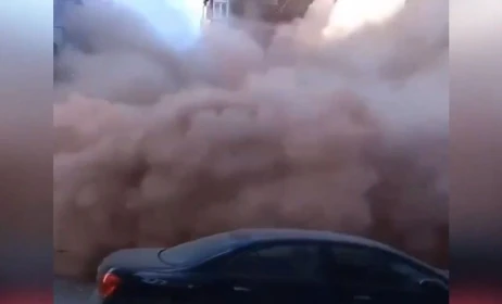Σε βίντεο-ντοκουμέντο που δημοσιοποιήθηκε σε μέσα κοινωνικής δικτύωσης καταγράφεται η στιγμή της κατάρρευσης του κτιρίου.
