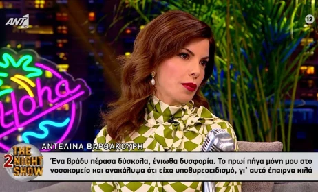 Η Αντελίνα Βαρθακούρη ήταν καλεσμένη στο «The 2night Show» και μίλησε για την εποχή που είχε παραπάνω κιλά γιατί αντιμετώπιζε ένα θέμα υγείας, ενώ αποκάλεσε τον εαυτό της νοικοκυρά και δεν την απασχολεί τι λένε οι άλλοι! «Δεν με αναγνωρίζω τότε, αλλά με αγαπώ. Δεν ποινικοποιούμε τα κιλά. Υπάρχουν άνθρωποι που είναι πολύ καλά με το σώμα τους και ας έχουν κιλά. Εγώ δεν ήμουν καλά με τα κιλά μου. Έπαθα κάτι που σήμερα το αντιλαμβάνομαι. Τότε αν με ρωτούσες τι είναι η κατάθλιψη, θα σου έλεγα ότι δεν ξέρω. Τώρα μπορώ να καταλάβω ότι εκείνη η Αντελίνα είχε μία κατάθλιψη.