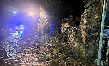 Στην επαρχιακή οδό Ζακύνθου – Καλαμακίου στο μετόχι του Αγίου Διονυσίου κατέρρευσε τμήμα τοίχου με αποτέλεσμα να κλείσει ένα σημείο του δρόμου.
