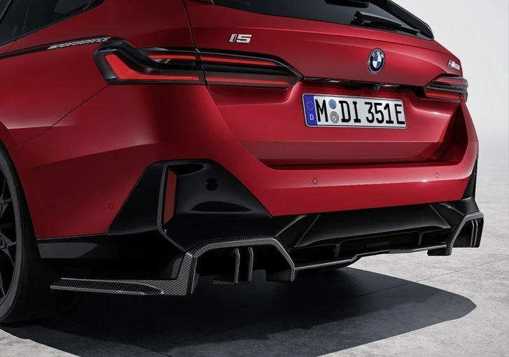 Τα BMW M Performance Parts προσθέτουν ξεχωριστές πινελιές στην εξωτερική εμφάνιση και ταυτόχρονα πληρούν τις λειτουργικές απαιτήσεις όσον αφορά την ελαφριά κατασκευή και την αεροδυναμική. Έχουν αναπτυχθεί ειδικά για τη νέα BMW Σειρά 5 Touring και τη νέα BMW i5 Touring με M Sport Package ή M Sport Package Pro και είναι απόλυτα προσαρμοσμένα στη γεωμετρία και τη σχεδίαση των οχημάτων.