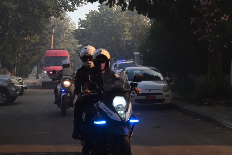 Η Ελληνική Αστυνομία έχει μπει σχεδόν από το ξεκίνημα της φωτιάς μέσα στους οικισμούς της Δροσοπηγής και του Κρυονερίου, και με ψύχραιμες κινήσεις οργανώνουν τις επιχειρήσεις απεγκλωβισμών όσων κατοίκων βρίσκονταν στα σπίτια τους.