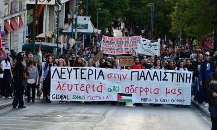 Διαμαρτυρία στο Σύνταγμα για τους κρατούμενους Έλληνες του Global Sumud Flotilla
