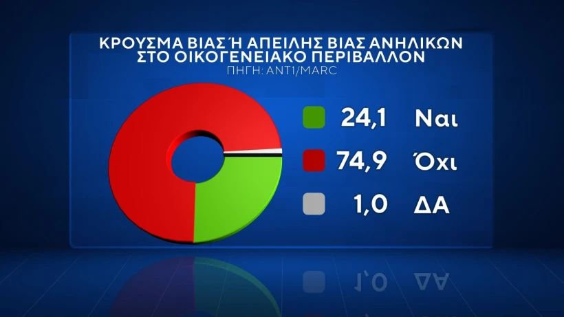 Πέρα από την πολιτική σκηνή, στην έρευνα τέθηκαν και άλλα ερωτήματα, όπως είναι η βία ανηλίκων, το bullying και τα μέτρα για την αντιμετώπιση των κρουσμάτων που σχεδόν καθημερινώς απασχολούν την επικαιρότητα. Στην ερώτηση «αν υπάρχει στο στενό οικογενειακό περιβάλλον κάποιο κρούσμα που να αφορά βία ή απειλή βίας ανηλίκων, όπως bullying, λεκτική βία, απειλή, χειροδικία, εκβιασμό, απόσπαση χρημάτων ή αντικειμένων», το 24,1%, δηλαδή ένας στους τέσσερις αποκρίθηκε θετικά, έναντι 74,9% που απάντησε αρνητικά.