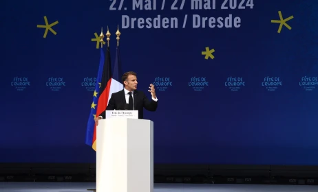 Ο Γάλλος πρόεδρος προειδοποίησε παράλληλα για τους κινδύνους της ακροδεξιάς για τη δημοκρατία στην Ευρώπη λιγότερο από δύο εβδομάδες πριν από τις ευρωεκλογές. «Ας κοιτάξουμε γύρω μας το έντονο ενδιαφέρον για τα αυταρχικά καθεστώτα, ας κοιτάξουμε γύρω μας την ανελεύθερη χρονική στιγμή που βιώνουμε», δήλωσε. »Η ακροδεξιά, αυτός ο δυσμενής άνεμος φυσά στην Ευρώπη, αυτό είναι μια πραγματικότητα, λοιπόν ας αφυπνιστούμε!» τόνισε.