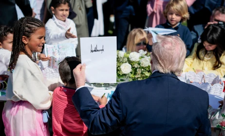 Στην παραδοσιακή γιορτή egg roll στους κήπους της προεδρικής κατοικίας, που πραγματοποιείται τη Δευτέρα του Πάσχα, ο Τραμπ κινήθηκε ανάμεσα στα παιδιά που συμμετείχαν στη γιορτή.