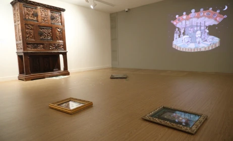 Τα έργα βρίσκονταν στο πάτωμα τις αίθουσας από τότε που ο βουλευτής της Νίκης, Νίκος Παπαδόπουλος, παρενέβη ρίχνοντάς τα κάτω, καθώς βεβήλωναν, σύμφωνα με τον ίδιο, τον Χριστό, την Παναγία και Αγίους.