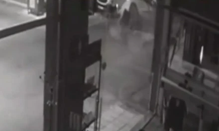 Η τρελή πορεία του αυτοκινήτου στον Εύοσμο Θεσσαλονίκης καταγράφηκε από κάμερα ασφαλείας.