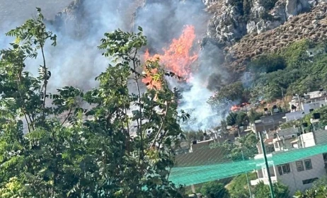 Η φωτιά έχει οριοθετηθεί, ωστόσο το έργο της κατάσβεσης εξακολουθεί να είναι δύσκολο λόγω των ισχυρών ανέμων που πνέουν στην περιοχή.