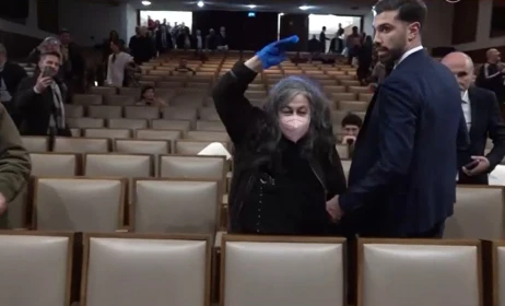 «Είσαι άρρωστος και ανώμαλος. Διεστραμμένος και διαστροφικός. Στην κόλαση θα πας», άρχισε να φωνάζει στον Στέφανο Κασσελάκη, την ώρα που ο φρουρός του προέδρου του Κινήματος Δημοκρατίας προσπαθούσε διακριτικά να την απομακρύνει από τον χώρο.