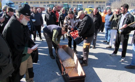 Φέρετρα και κόλλυβα. Οι αγρότες συγκεντρώθηκαν στο τελωνείο Καστοριάς και έκαναν τη... αναπαράσταση της «κηδείας της αγροτιάς».