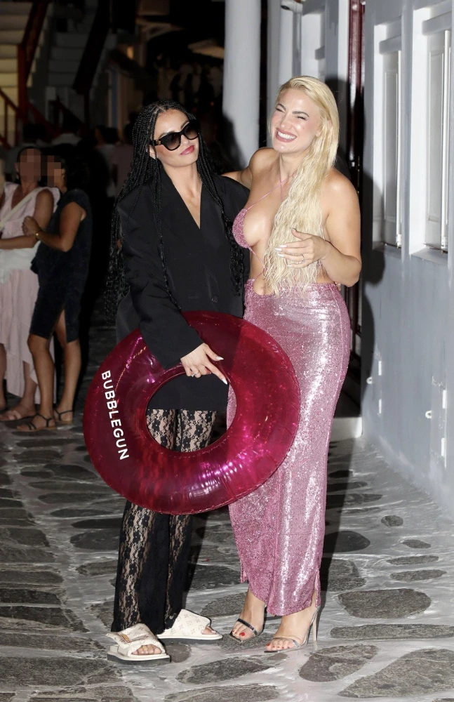 Οι δυο γυναίκες, αφού πόζαραν χαμογελαστές στον φωτογραφικό φακό, διασκέδασαν σε ένα από τα μπαρ του νησιού μέχρι τις πρώτες πρωινές ώρες.