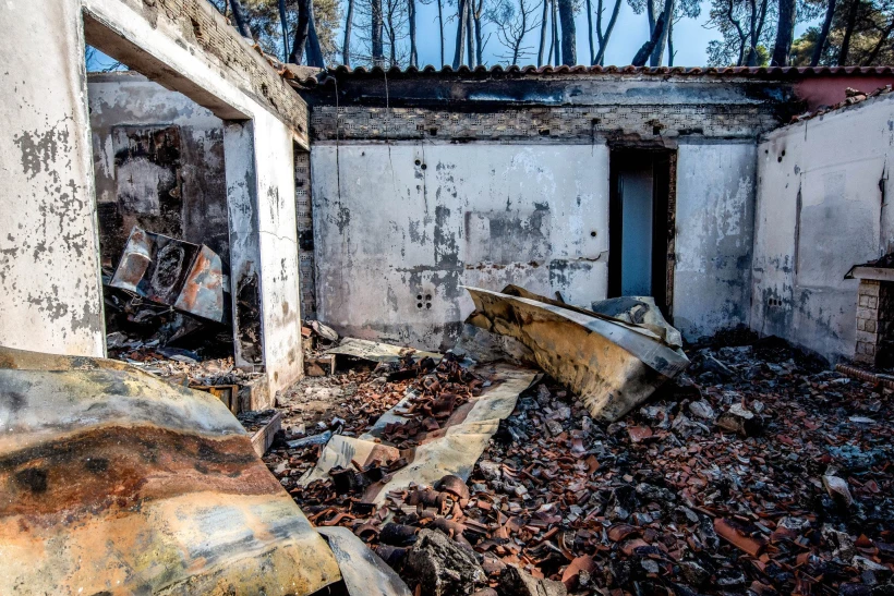 Σαλόνια και κουζίνες έχουν μετατραπεί σε σωρούς από στάχτη και καμένα έπιπλα, ενώ αυλές που άλλοτε έσφυζαν από ζωή τώρα είναι σιωπηλές, γεμάτες αποκαΐδια.