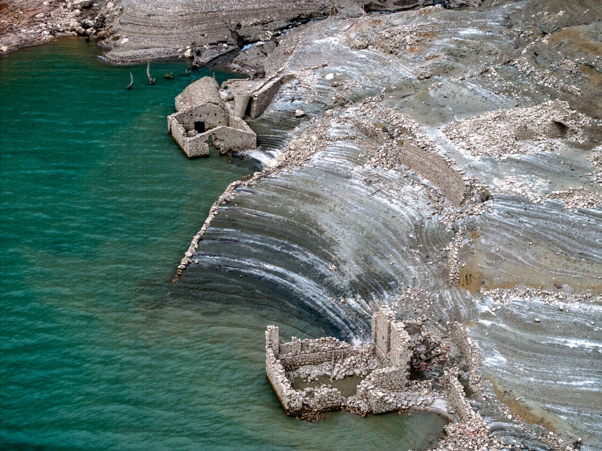 Η χαμηλή στάθμη του νερού αποκαλύπτει το χωριό που χρειάστηκε να εκκενωθεί για να φτιαχτεί η τεχνητή λίμνη.