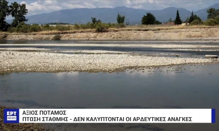 Σύμφωνα με τον Δήμαρχο Παιονίας, η παρακράτηση ποσοτήτων νερού από τη Βόρεια Μακεδονία έχει μειώσει σημαντικά την στάθμη του Αξιού.