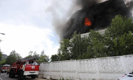 Επτά άνθρωποι σκοτώθηκαν σήμερα, εκ των οποίων δύο άνδρες που έπεσαν στο κενό από τους υψηλότερους ορόφους ενός φλεγόμενου οκταώροφου κτιρίου, όπου παλαιότερα στεγαζόταν ένα ερευνητικό ινστιτούτο, λίγο έξω από τη Μόσχα, μετέδωσαν τα ρωσικά μέσα ενημέρωσης.