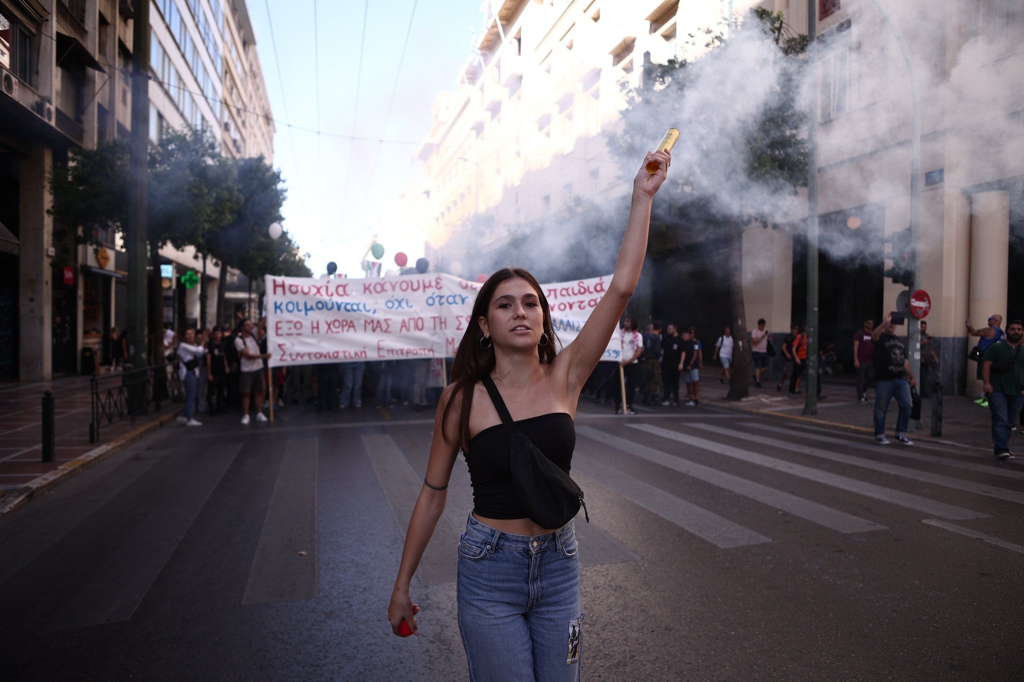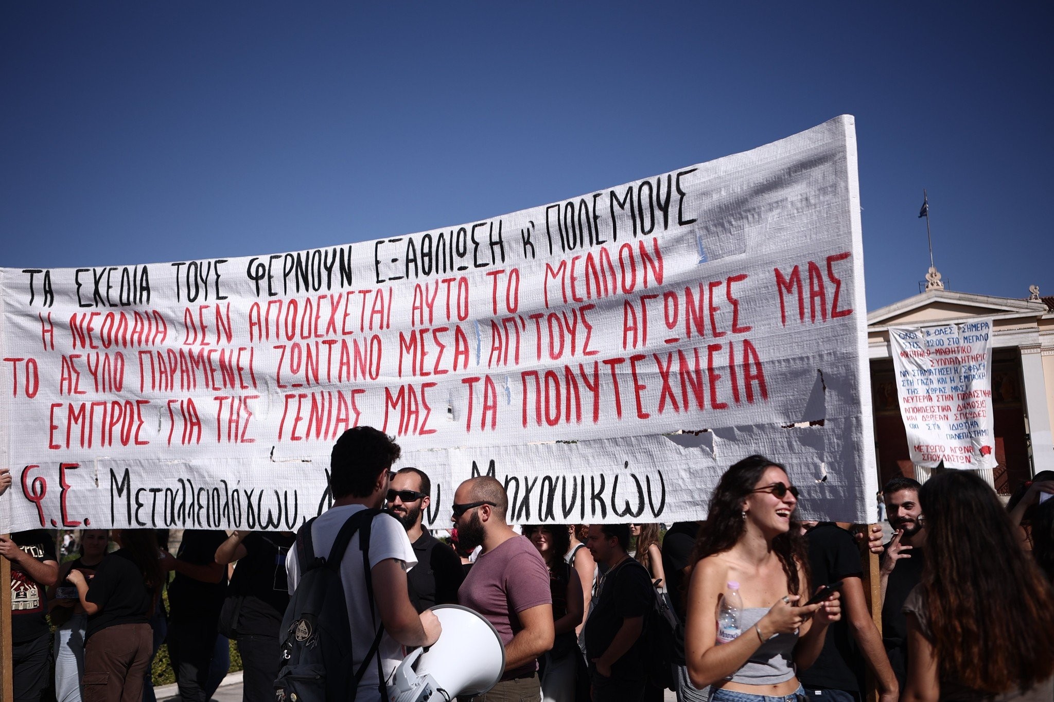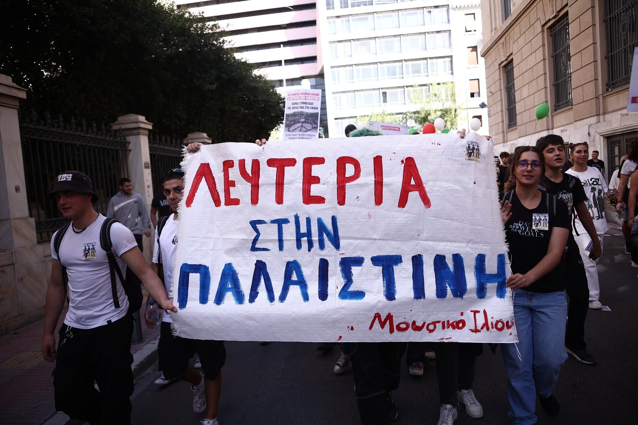 Ακούστηκαν επίσης, συνθήματα αλληλεγγύης στον Παλαιστινιακό λαό, ζητώντας την άμεση παύση πυρός στην Λωρίδα της Γάζας.