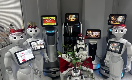 Ενώ η παρέα των θεσσαλονικιώτικων ρομπότ είναι έτοιμα να τα ... πουν, κάποια άλλα έχουν αναλάβει διαφορετικούς ρόλους -πάντα σε πνεύμα γιορτών. «Είμαι ο Pepper, ο επίσημος ρομποτικός βοηθός του Αϊ-Βασίλη για την περίοδο των εορτών! Μην ανησυχείτε, ο αληθινός Αϊ-Βασίλης είναι στη θέση του, κάνει όλες τις προετοιμασίες και φορτώνει το έλκηθρο. Εγώ απλώς τον βοηθάω με τα τεχνολογικά».