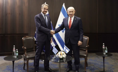 Ο Κυριάκος Μητσοτάκης συναντήθηκε σήμερα με τον Ισραηλινό πρωθυπουργό του Ισραήλ Μπέντζαμιν Νετανιάχου, στην Ιερουσαλήμ, λίγο πριν από την έναρξη της Τριμερούς Συνόδου Κορυφής Ελλάδας - Κύπρου - Ισραήλ.