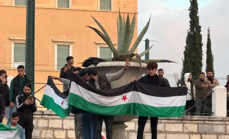 Στις 16:00 το απόγευμα της Κυριακής ξεκίνησε συγκέντρωση Σύρων αντικαθεστωτικών, στο Σύνταγμα, που με τραγούδια και κρατώντας σημαίες των ανταρτών αλλά και της Παλαιστίνης πανηγυρίζουν για την πτώση του Μπασάρ Αλ Άσαντ.