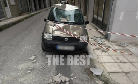 Πάτρα: Τσιμέντο από μπαλκόνι έπεσε σε αυτοκίνητο εξαιτίας των θυελλωδών ανέμων
