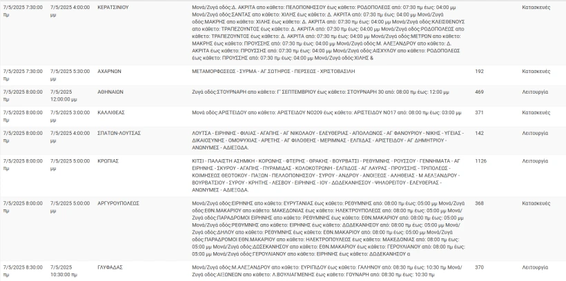 Οι δήμοι της Αττικής που θα επηρεαστούν από τις διακοπές ρεύματος είναι οι παρακάτω:
