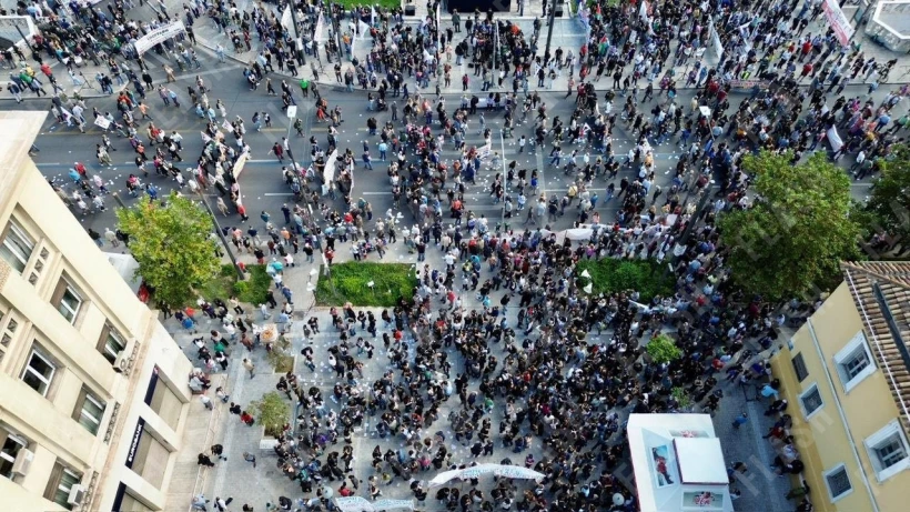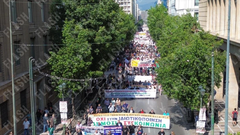 Σε εξέλιξη συγκεντρώσεις στο κέντρο της Αθηνάς: Στους δρόμους για το 13ωρο - Εικόνες από drone