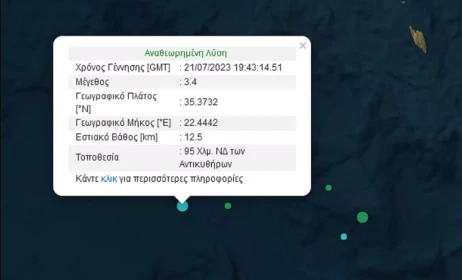 Σεισμός 3,4 Ρίχτερ σημειώθηκε στη θαλάσσια περιοχή ανοικτά από τα Αντικύθηρα το βράδυ της Παρασκευής, 21 Ιουλίου.