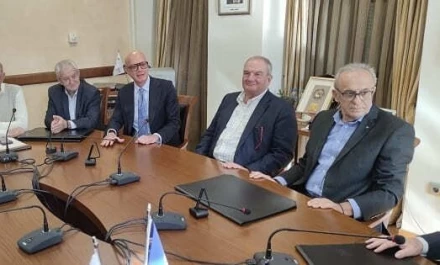 Τον υποδέχθηκε ο πρόεδρος της Συνεταιριστικής Τράπεζας Βασίλης Κολιός ενώ στη συνάντηση παραβρέθηκαν ο Διευθύνων Σύμβουλος Ιωάννης Βουγιούκας, ο Εντεταλμένος Εκτελεστικός Σύμβουλος Βασίλης Τσουκανέλης, μέλη του Διοικητικού Συμβουλίου και ο πρώην Πρόεδρος Κώστας Ζωνίδης.