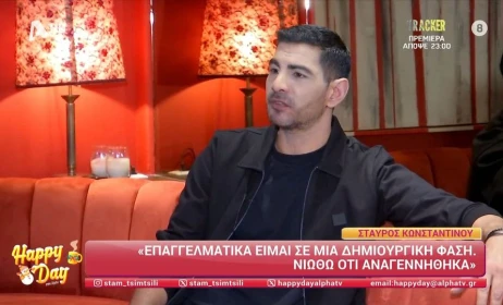 Ο Σταύρος Κωνσταντίνου μίλησε στην κάμερα του “Happy Day” για την επιστροφή του στον χώρο της μουσικής, τα οικονομικά προβλήματα που κλήθηκε να διαχειριστεί, τις δυσκολίες που είχε με τη σύζυγό του μέχρι να αποκτήσουν παιδί, αλλά και τη σεξουαλική παρενόχληση που δέχτηκε από θαυμάστριά του μέσα στο καμαρίνι του.