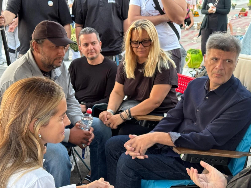Φωτογραφίες που εξασφάλισε το flash.gr από τη συνάντηση στην πλατεία Συντάγματος αποτυπώνουν με τον πιο εύγλωττο τρόπο τη δύναμη της ανθρώπινης συμπαράστασης. Ο Φοίβος Δεληβοριάς και η Νατάσα Μποφίλιου εμφανίζονται να συνομιλούν με τον κ. Ρούτσι με σεβασμό και συγκίνηση, ενώ σε ένα από τα πιο φορτισμένα καρέ, η Νατάσα τον αγκαλιάζει σφιχτά – μια κίνηση γεμάτη συναίσθημα, που δείχνει ξεκάθαρα ότι σε αυτόν τον αγώνα ο κ. Ρούτσι -όπως και και κανένας συγγενής θύματος- δεν είναι μόνος.