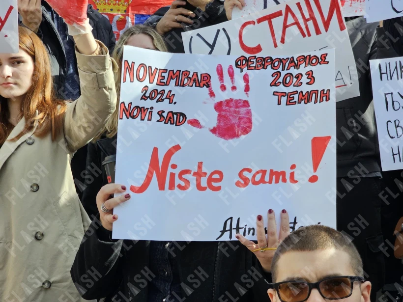 Το παρών στη μεγάλη συγκέντρωση των Τεμπών έδωσαν και Σέρβοι που δενε ξεχνούν τη δική τους πολύνεκρη σιδηροδρομική τραγωδία του Νόβι Σαντ.