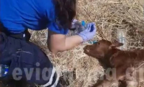 Όπως φαίνεται σε βίντεο που δημοσιοποίησαν, οι εθελοντές εντόπισαν και παρείχαν τις πρώτες βοήθειες σε ένα νεογέννητο μοσχαράκι, το οποίο βρισκόταν εξαντλημένο στο έδαφος.