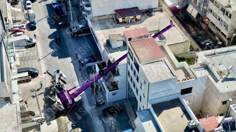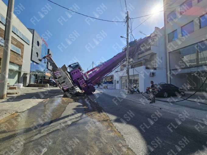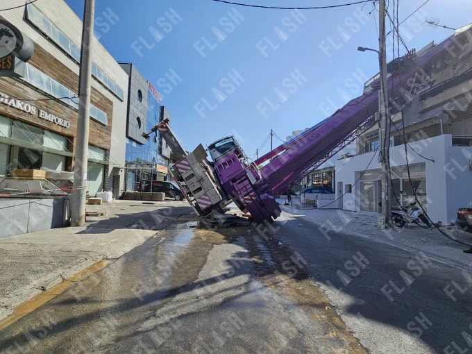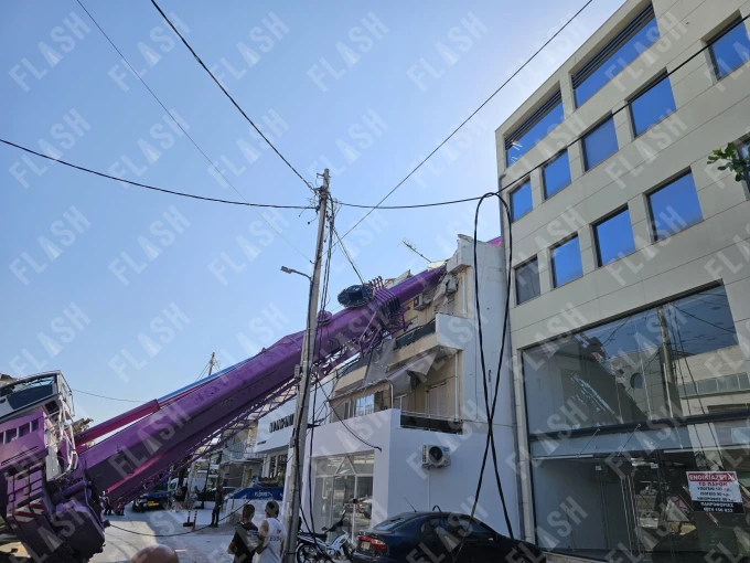 Ο 44χρονος χειριστής του γερανού φοβήθηκε και πήδηξε από το όχημα, με αποτέλεσμα να τραυματιστεί στα κάτω άκρα, ενώ έχει μεταφερθεί σε ιδιωτικό νοσοκομείο.