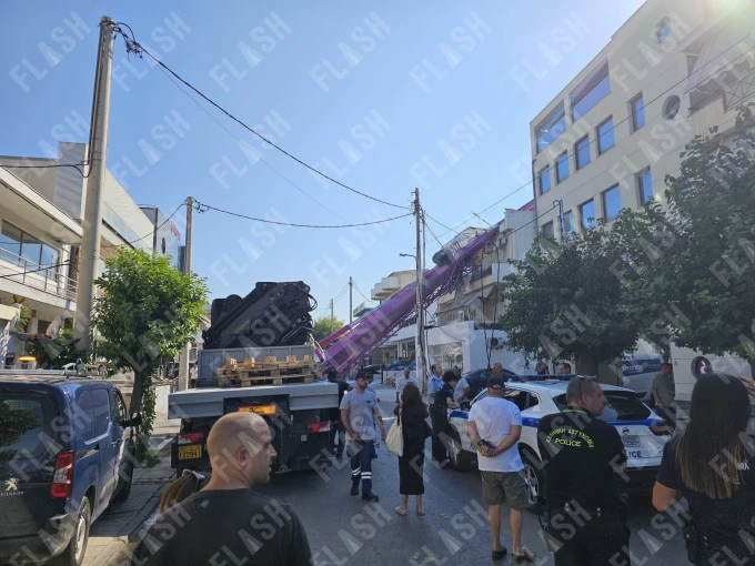 Συναγερμός σήμανε στην οδό Αρκαδίας στο Περιστέρι, όταν γερανοφόρο όχημα παρέσυρε καλώδια ηλεκτροδότησης και έπεσε σε πολυκατοικία.
