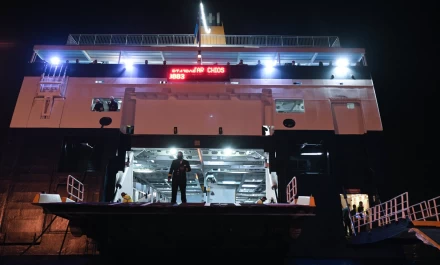«Την ώρα λοιπόν που το πλοίο είχε πάρει άδεια απόπλου και πριν ακόμα λύσει κάβους ,σήκωνε τον καταπέλτη μέχρι να κλείσει και μετά να αποπλεύσει ,προέκυψε νεαρός με σάκκο στην πλάτη επιβαίνοντας σε skateboard, προερχόμενος από την δυτική πλευρά του λιμανιού με μεγάλη ταχύτητα κατευθυνόταν κατ' ευθείαν πάνω στον ήδη κατά το ήμισυ υψωμένο καταπέλτη ,ο οποίος έκλεινε πάνω από τον προβλήτα», αναφέρει χαρακτηριστικά ο πλοίαρχος και συνεχίζει: