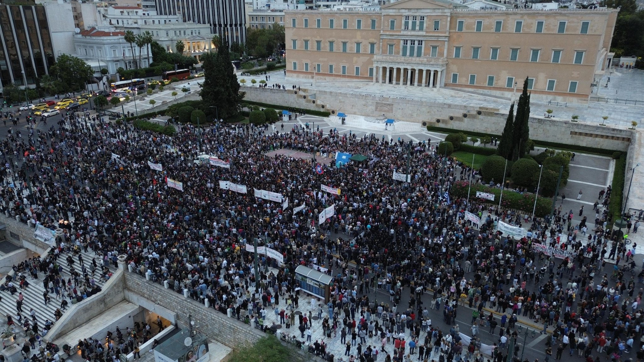 Γύρω στις 18.30 η ΕΛΑΣ έκλεισε τη Λεωφόρος Αμαλίας, με την ΓΑΔΑ - σε νεότερη εκτίμηση - να υπολογίζει τους συγκεντρωμένους περίπου στα 2.000 άτομα.