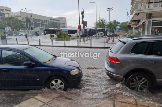 Θεσσαλονίκη: «Ποτάμια» οι δρόμοι μετά την καταιγίδα - 70 κλήσεις στην Πυροσβεστική [vids+pics]