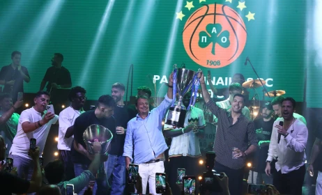 Δεν θα μπορούσε λοιπόν να μην γιορτάσει την κατάκτηση των τροπαίων της Basket League και της EuroLeague. «Σύσσωμη» η ομάδα των «πρασίνων» έδωσε βροντερό παρών στο νυχτερινό κέντρο «Fantasia» όπου τραγουδάει ο Κωνσταντίνος Αργυρός. Παίκτες ανέβηκαν στην πίστα χόρεψαν ζεϊμπέκικο και γνώρισαν την πλήρη αποθέωση.