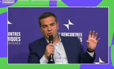 Παρέμβαση στο συνέδριο Le Cercle des Economistes, το οποίο πραγματοποιείται στην πόλη Aix-en-Provence της Γαλλίας, πραγματοποίησε ο Αλέξης Τσίπρας, συμμετέχοντας στη συζήτηση με τον Ζακ Αταλί οικονομολόγο-σύμβουλο του Γάλλου Προέδρου Φρανσουά Μιτεράν.