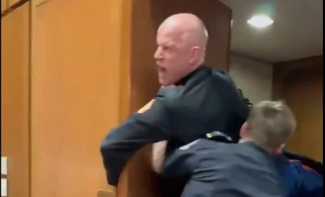 Η ασφάλεια του Κογκρέσου έσπευσε να τον απομακρύνει, όμως ο βετεράνος αντιστάθηκε, με αποτέλεσμα να ακολουθήσει έντονη αψιμαχία. Αρκετοί αστυνομικοί χρειάστηκε να τον σηκώσουν κυριολεκτικά για να τον βγάλουν εκτός αίθουσας, ενώ οι παρευρισκόμενοι παρακολουθούσαν έκπληκτοι όσα διαδραματίζονταν.